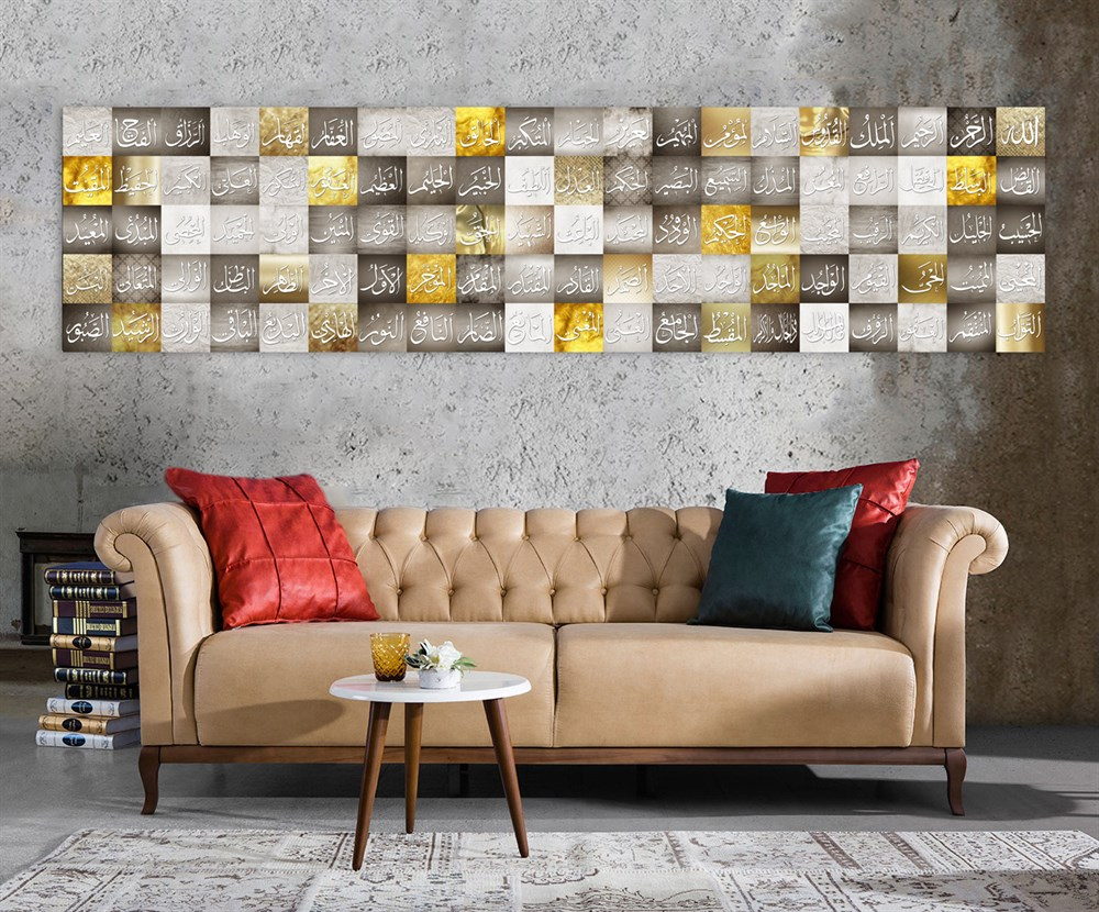 Esmaül Hüsna Vizon Altın Kahverengi Gri Renkli Allahın 99 İsmi Kanvas Tablo