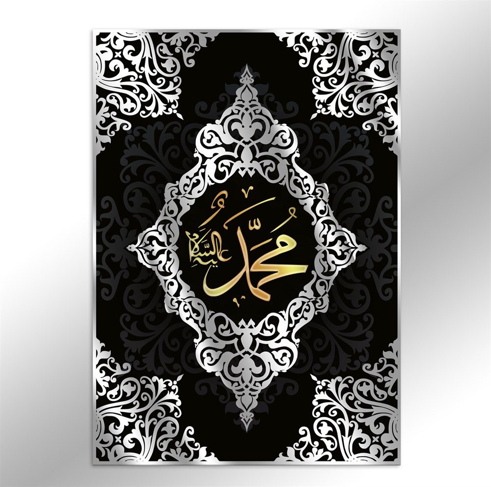 Muhammed yazılı Gümüş Siyah Renkli Kanvas Tablo