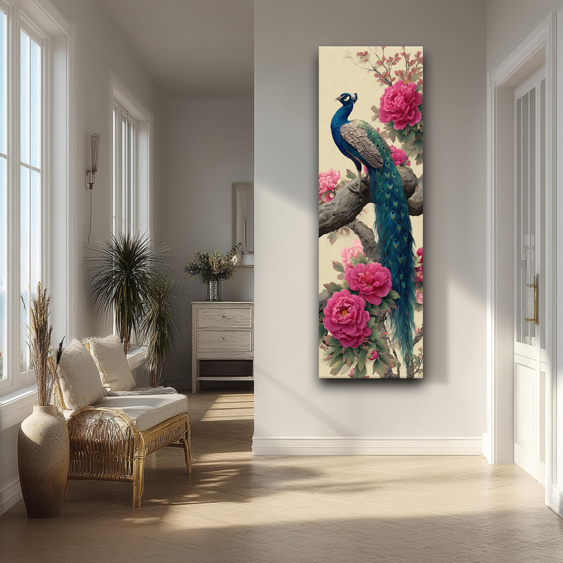 Ürün Açıklaması: Zarafetin ve doğanın büyüleyici güzelliğini duvarlarınıza taşıyın! Bu tablo, canlı pembe şakayık çiçekleri arasında konumlanmış asil bir tavus kuşunu betimler. İnce detaylara sahip yüksek çözünürlüklü baskı, evinize estetik ve sofistike bir dokunuş kazandırır. Giriş holü, yatak odası veya oturma odasında dikkat çekici bir sanat eseri olarak öne çıkar.